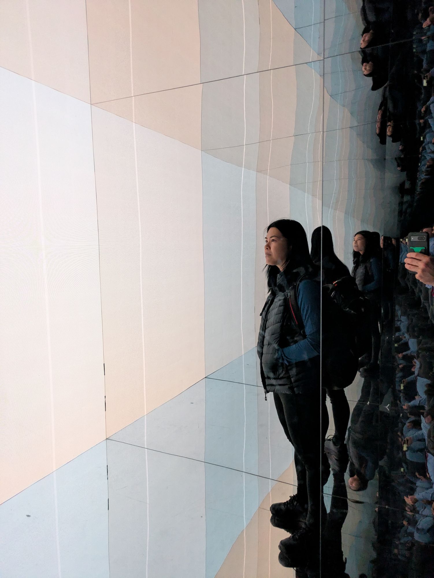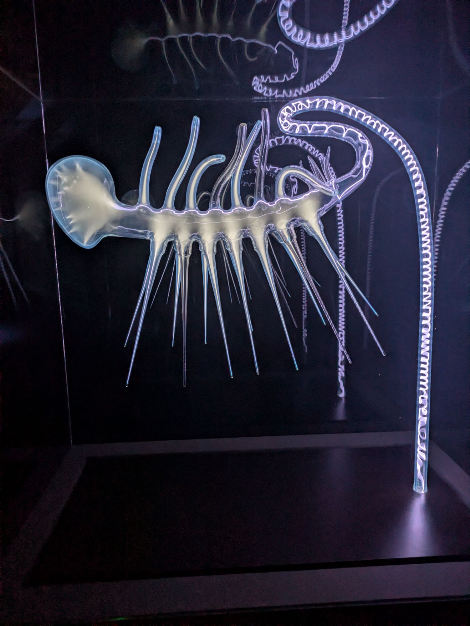 We then went to the Light Museum. It was an art gallery, not a museum, and they clearly ran out of light based things and had a few artists just put objects on display. They had some really amazing light based art. I was disappointed in one of the exhibits because it was supposed to be an apparently static water drop in a strobe light, but the drops weren’t calibrated to the strobe frequency, so it didn’t hit the effect at all.