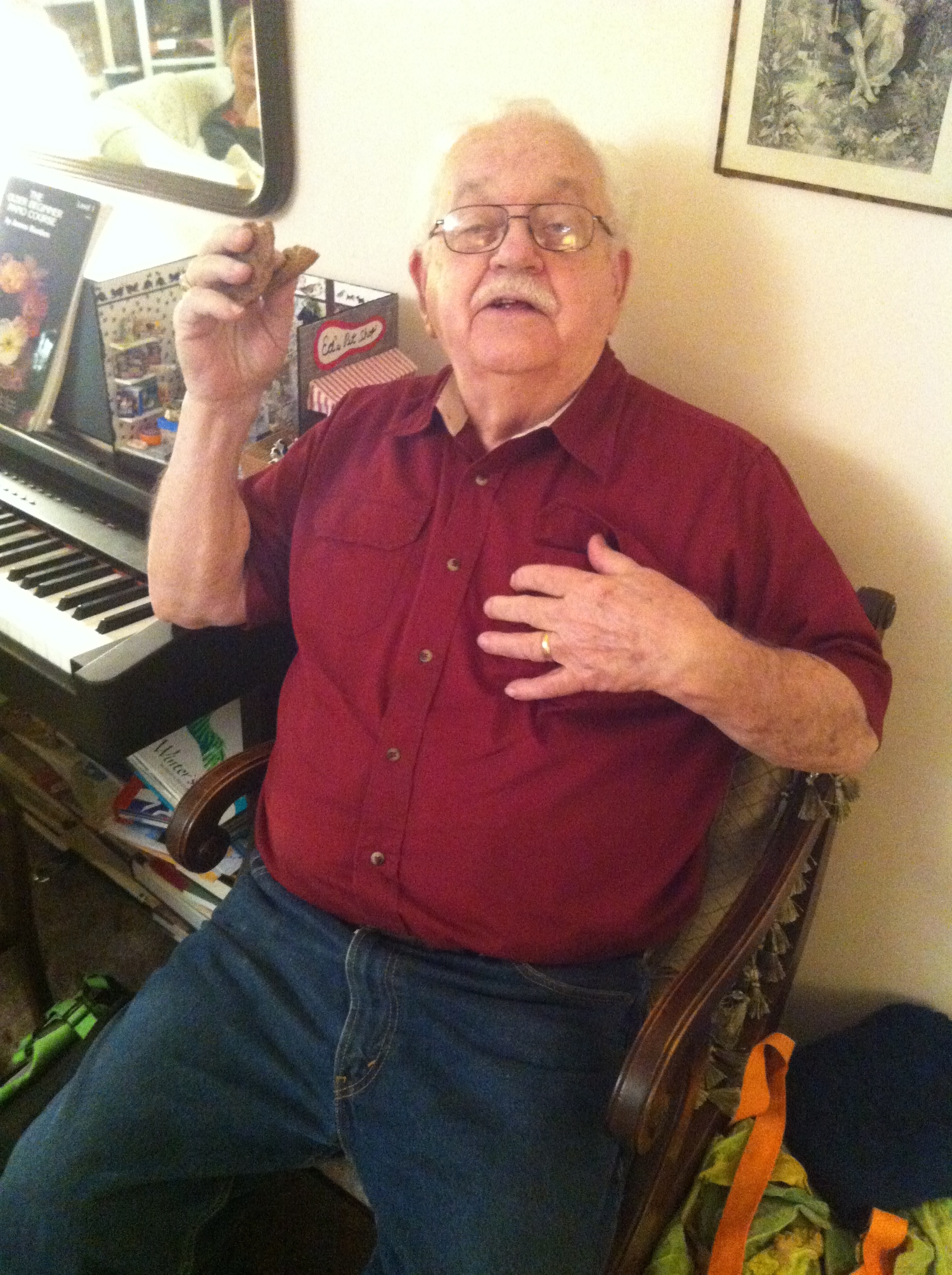 We went to my grandmother’s house for Thanksgiving. We got up early and met at my parents house for breakfast before leaving. Kim was running late so Mom waited for her. We got a little far ahead and stopped by Bass Pro Shop on the way. We were the first ones there, and we helped set up as much as we could. Nana is always wanting to set things up and clean herself. Not many people came this year, and it was probably a total of 20 people. Fred and I got to show pictures to each other.