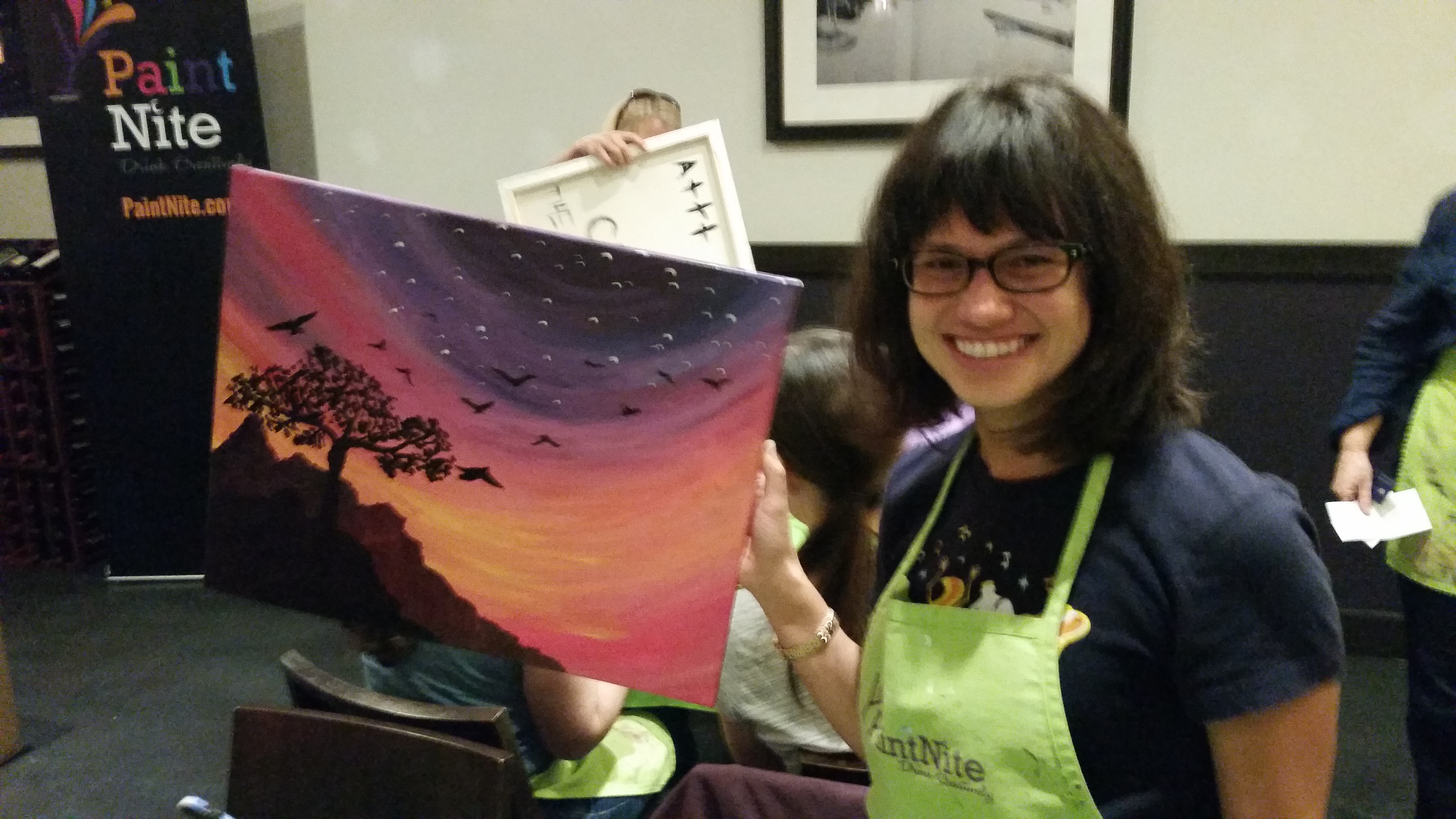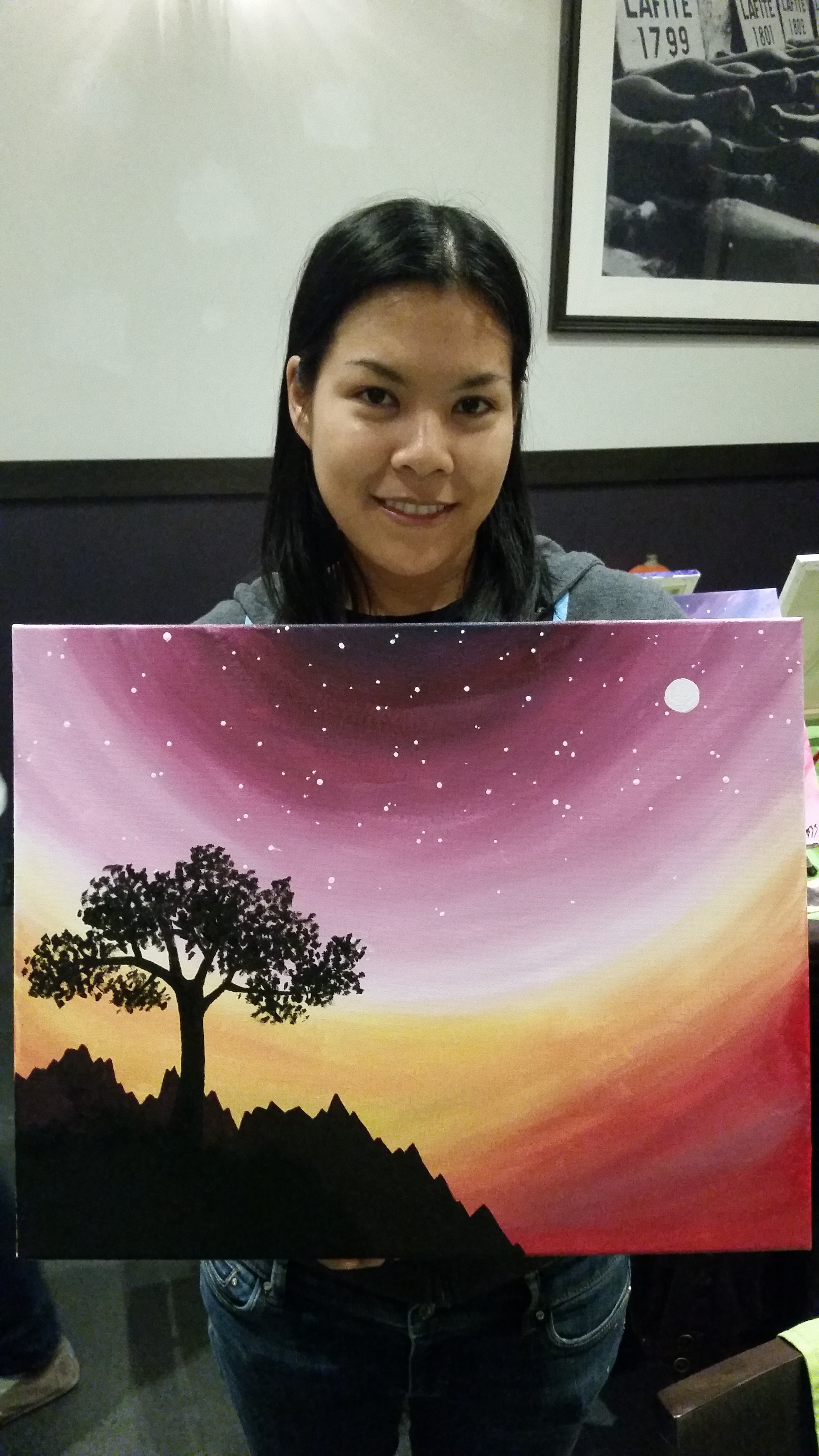 Liana and Ryan joined us for a paint nite event, and it was a really good time. The venue was a little cramped, but I was able to get over to them and chat for a bit. The painting was also the best one we’ve done so far, and I got a lot of comments on mine looking good. I really enjoy the simple paintings with really colorful backgrounds.