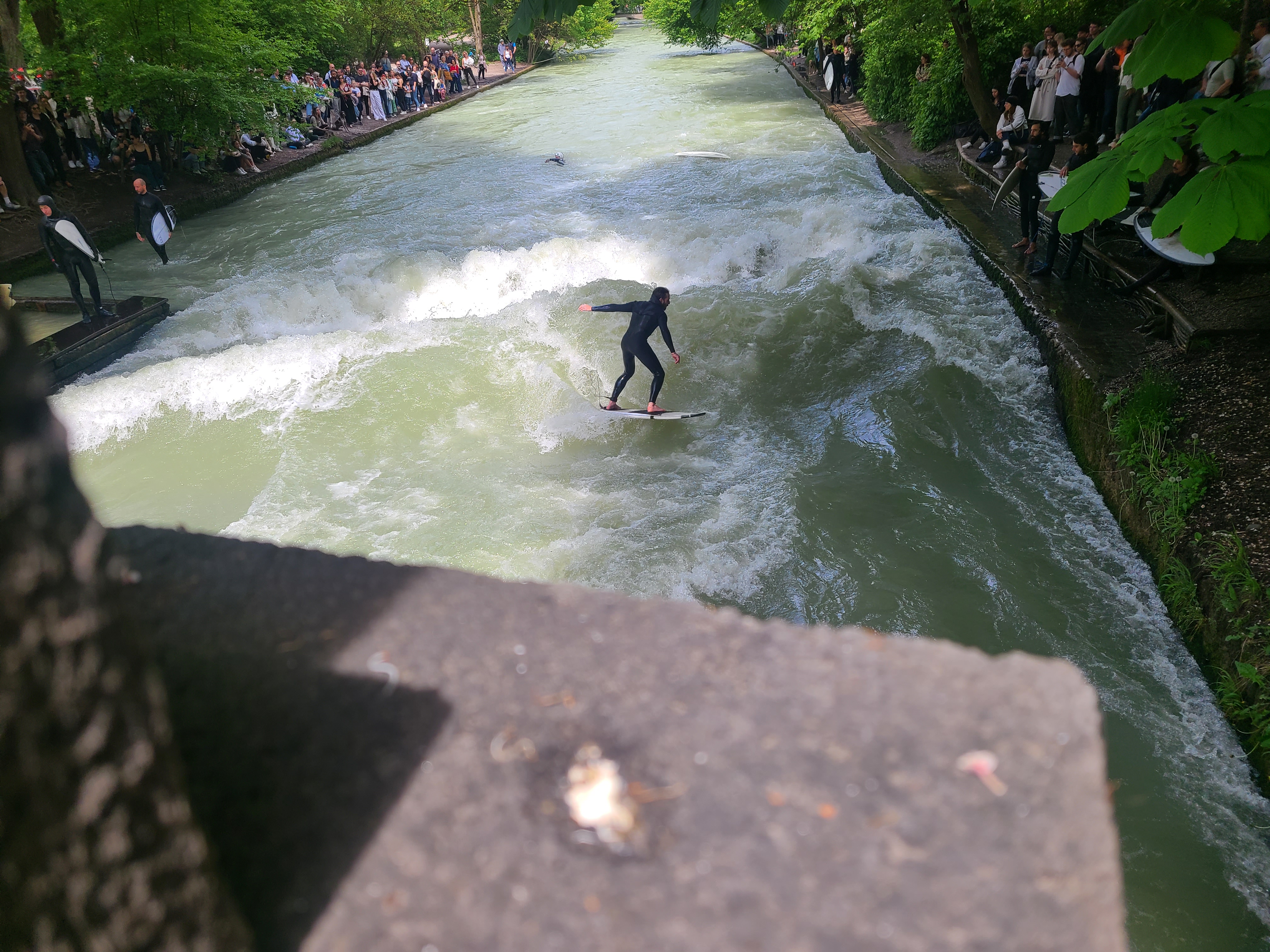 Two friends of ours, Michael and Yutong, contacted us a few weeks ago saying they had last minute business trips to Europe. One was gong to be in Munich on the weekend, and the other was going to be in Zurich at the start of the week. We had a late Friday flight planned for getting to Munich, but I was an idiot and forgot to take my passport with me. I had to go back to the house and missed the flight. I grabbed one the next morning and met them in Munich for lunch. It is nice that it is so easy to get around, and missing the flight wasn’t a huge deal. We had a great walk around the English Garden and saw the standing wave in the canal. It was the kind of thing that I think should happen in more places. We got to see a ton of little chicks of all sorts of birds, some of them we didn’t even know what they were. We drank at the Hofbrauhaus, and saw the Nymphenburg Palace. The gardens at the palace were amazing, and we especially liked the grotto and carriage collection.