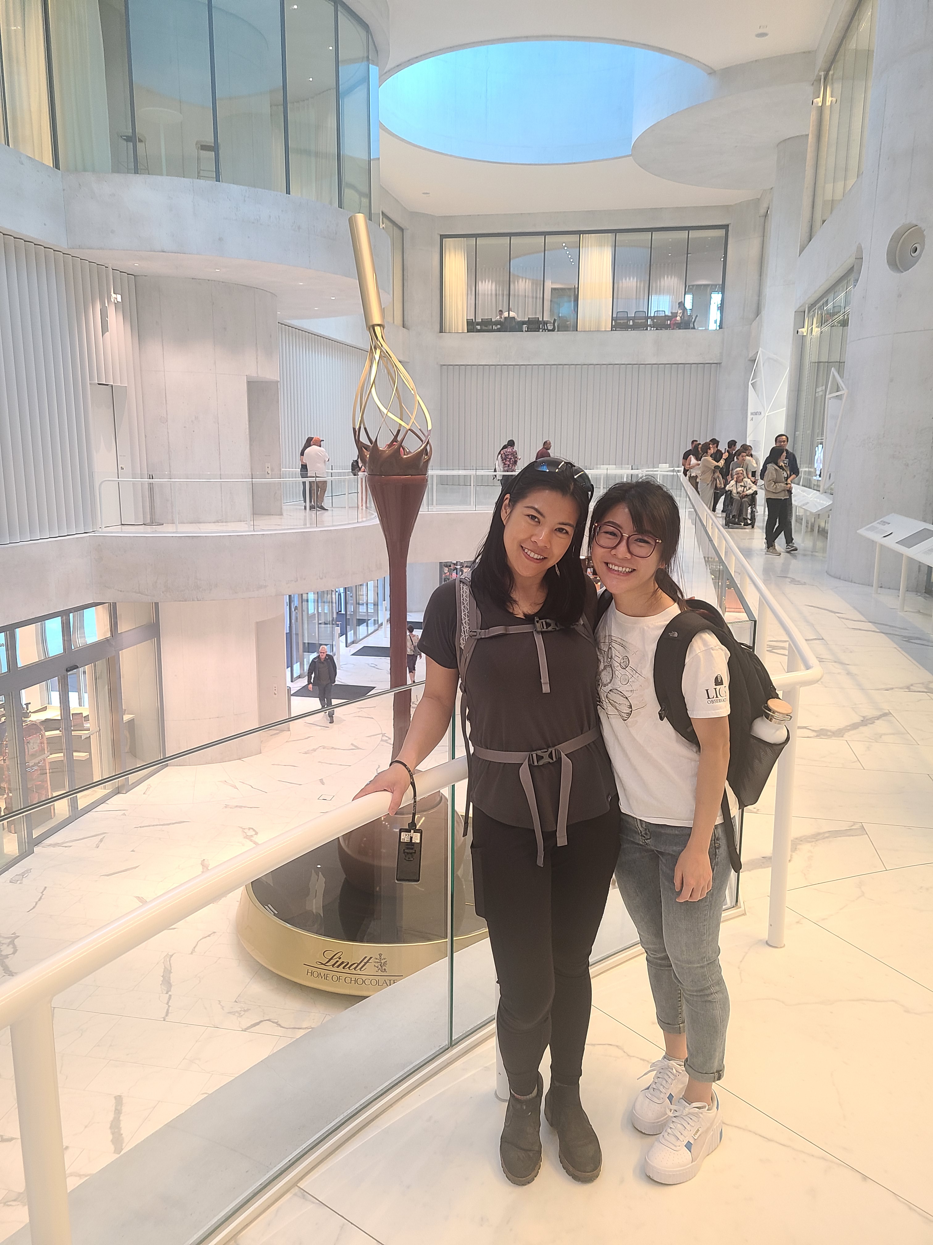 Steph and I said bye to Michael, and hopped on the train to Zurich. We didn’t have nearly as much time in Zurich, but had the Lindt chocolate factory tour booked. We got in a little late, and had a great lunch with Yutong. It was so great to see her. I love how infectiously happy she can be. The chocolate factory tour was great, especially with all the included chocolate. They had three chocolate fountains, eight machines chopping up chocolate bars, eight different types of chocolate truffles, and two places to get chocolate squares. It was a truly decadent experience, and we all left on an incredible sugar high. I was shaking slightly from all the sugar. We chilled at the park for a bit before heading to an amazing Syrian dinner that Yutong suggested.
