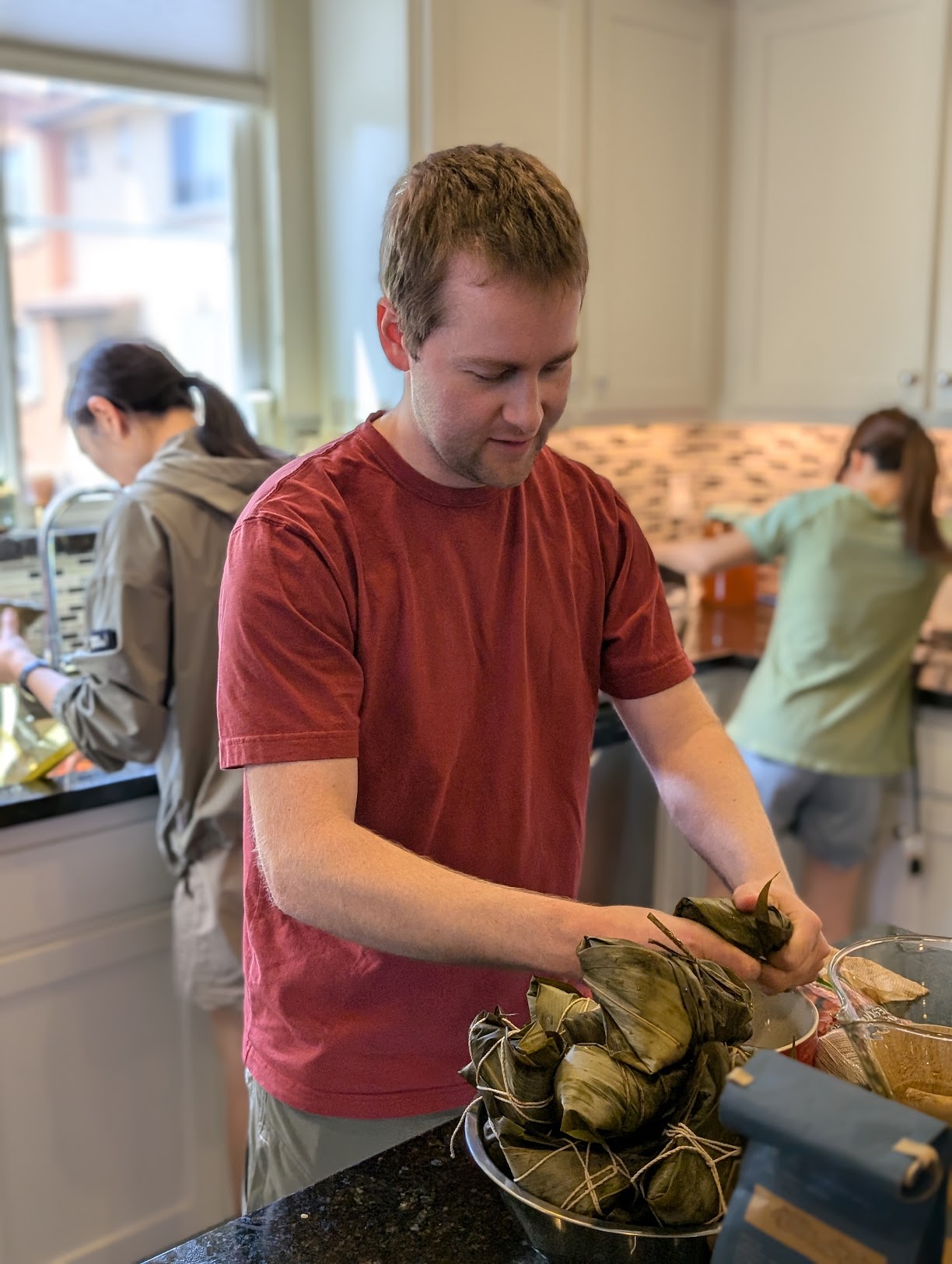 Saturday was more laundry, then heading to Paul and Yutong’s place in Sunnyvale to make Zhong Zhi, a sticky rice dumpling wrapped in leaves and boiled. It was so messy, but a lot of fun to make and eat. We were all sooo full by the end of it. I took some back to the hotel and ate it, but without a plate or utensils it looked like a murder scene afterwards.