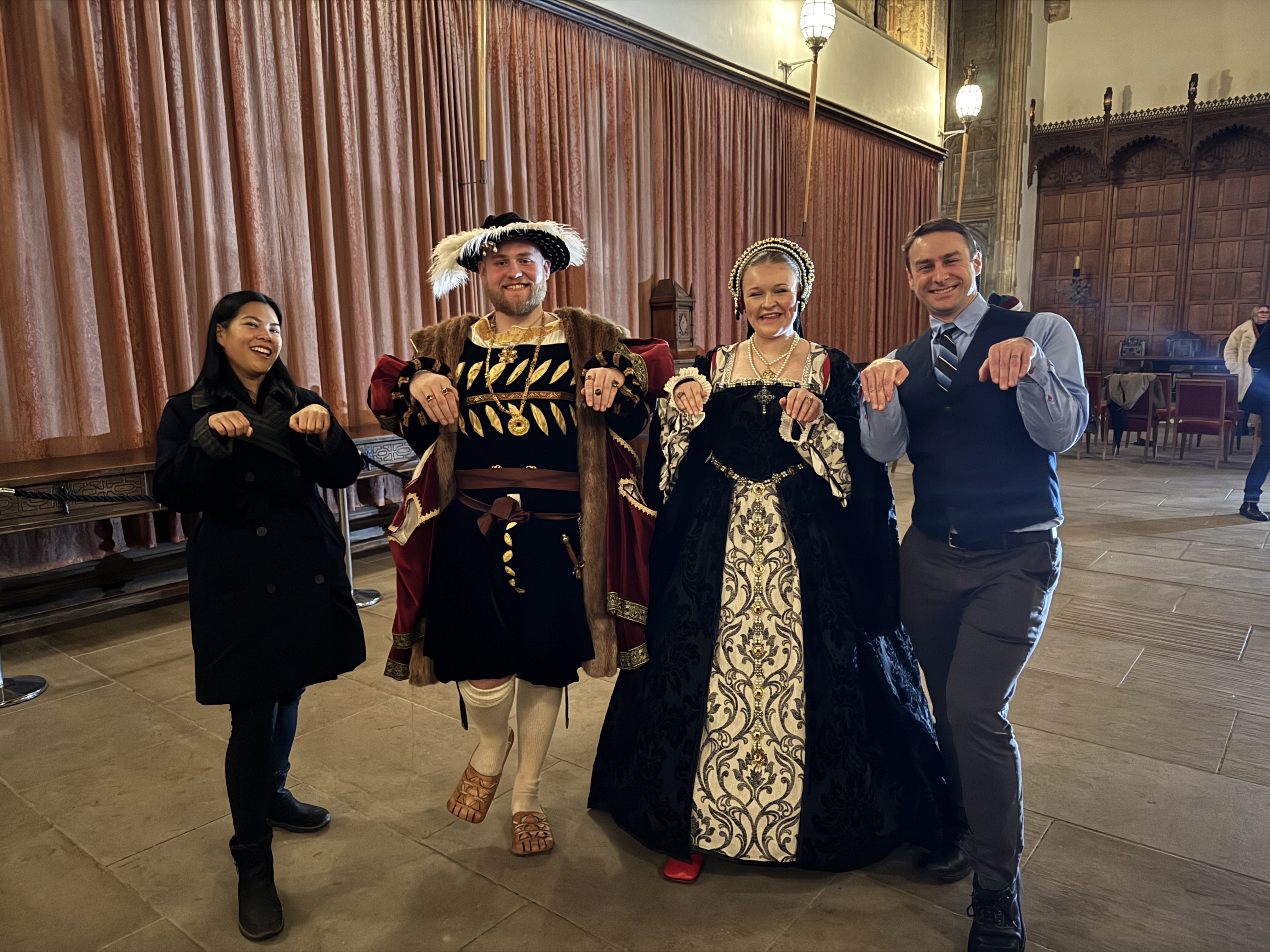 Sunday we went to an event where we didn’t know what to expect. It was billed as a twelfth night celebration at Eltham Palace with the English Heritage pass. There wasn’t any description of what that entailed. It turned out to be a Henry VIII player lecturing on what the Tudors did for twelfth night and then we did a series of dances from that period. The dancing was surprisingly fun.