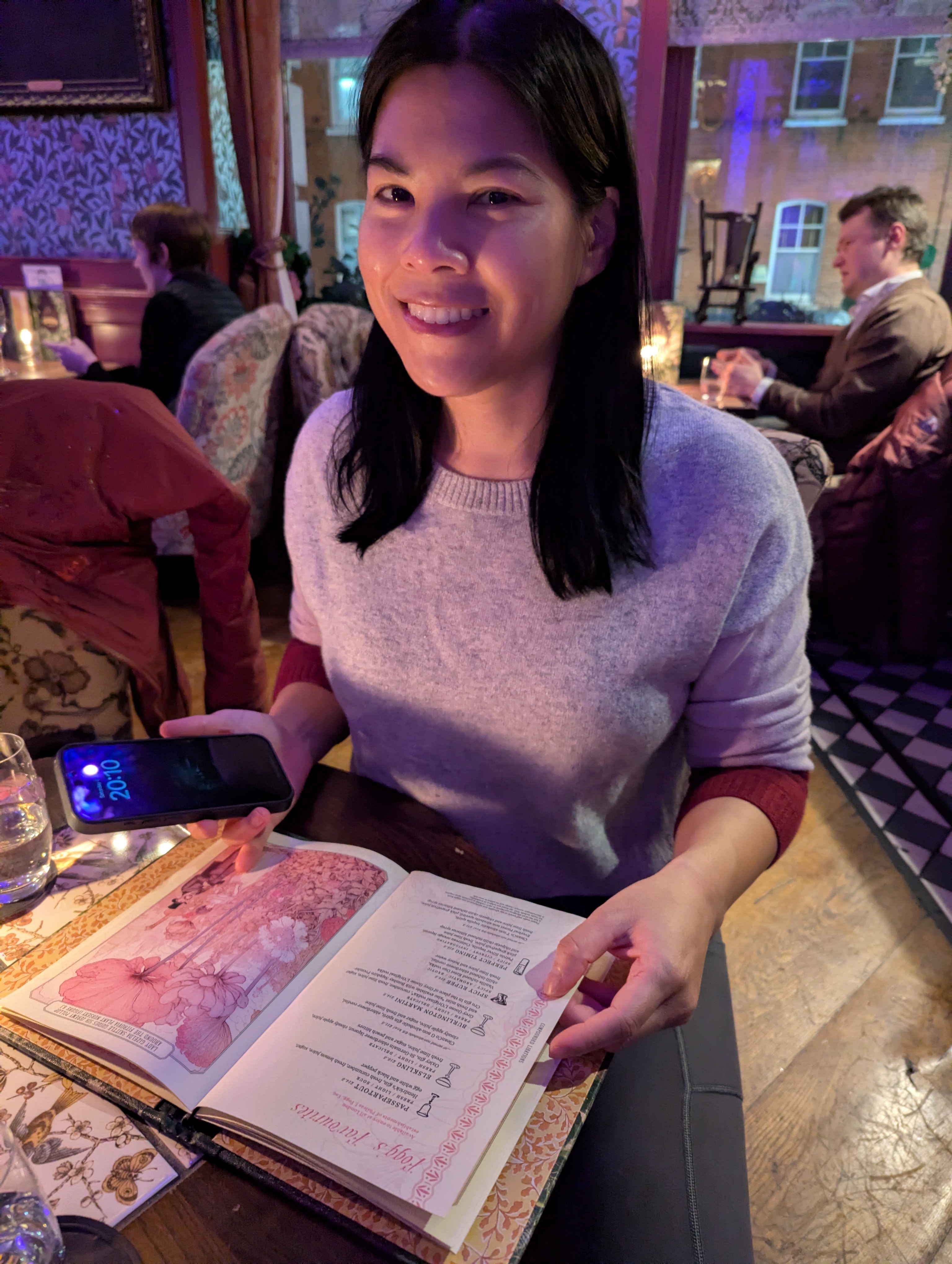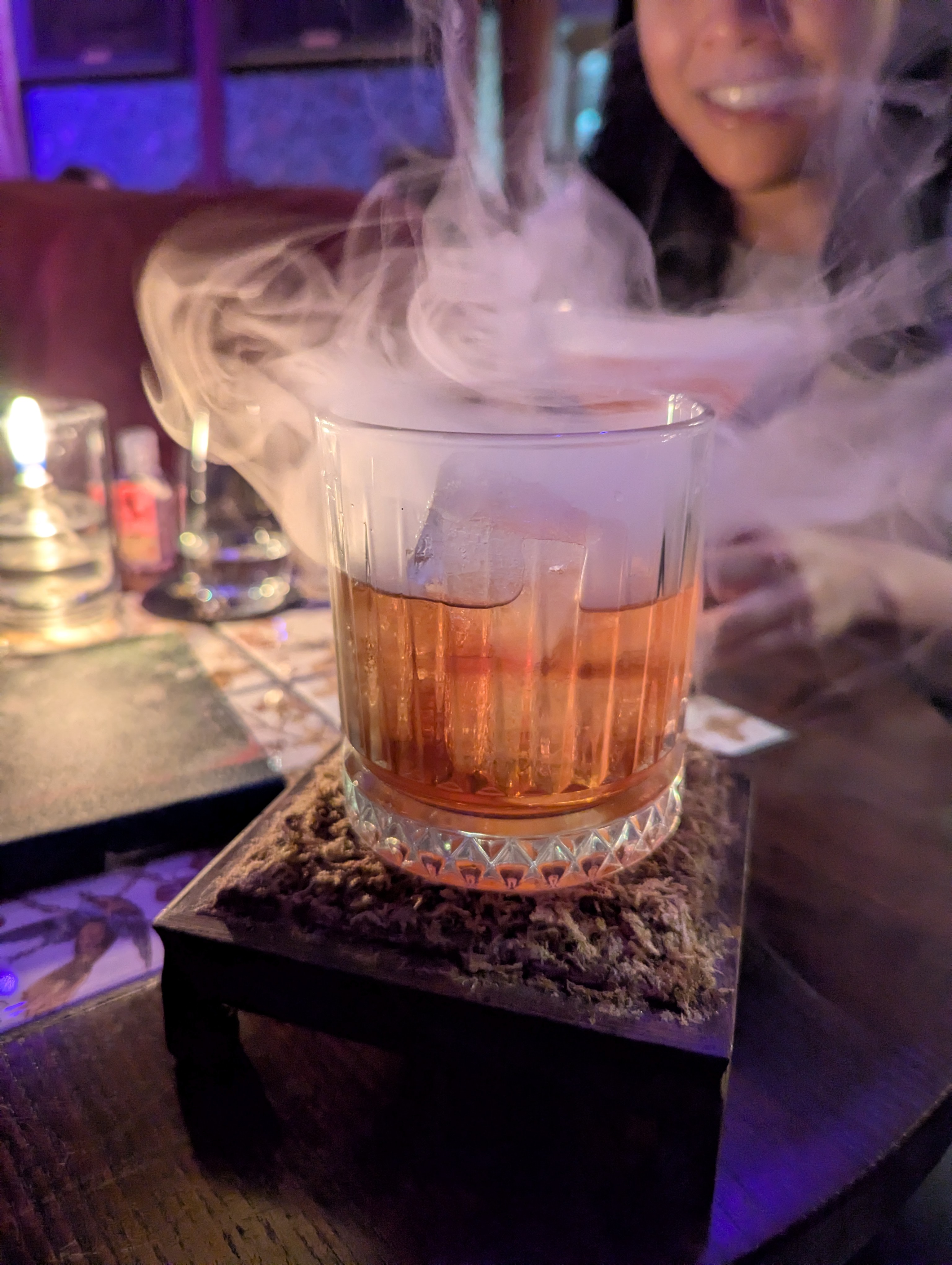 Saturday we went to Mr. Fogg’s Botanical Tavern & Treehouse. Steph got us a seat in the treehouse part of it, and I really enjoyed the atmosphere. They do such a great job with the decor, and the drinks. I loved the old portraits where they painted flowers into the hair of stogy old men, and pith helmets onto women in ball gowns. The drinks were also presented in a fantastical way. Steph had one that had a smoke bubble on top. I had one in a display case with smoke, and another that came in a small chest.