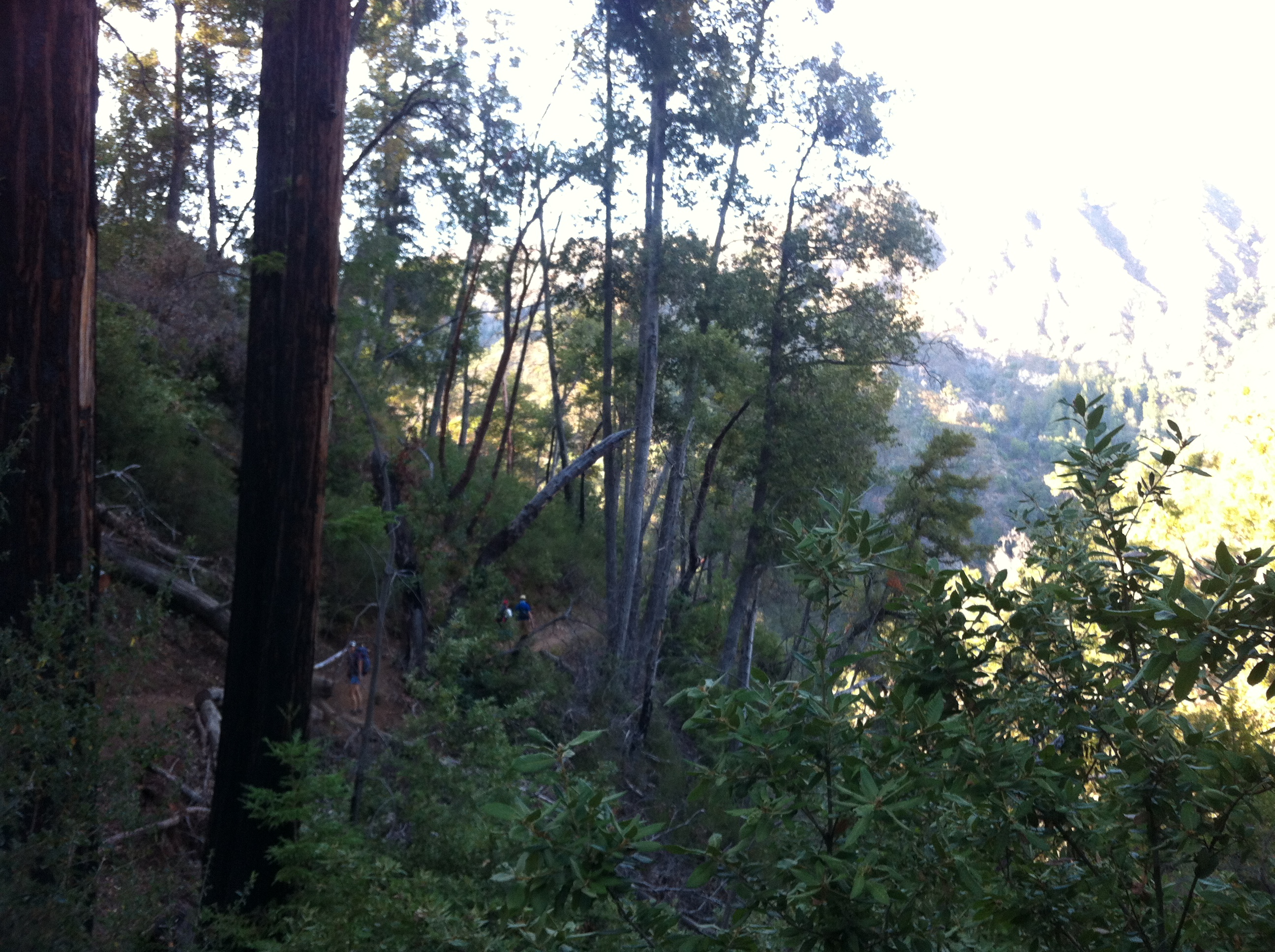 The next morning we continued down the rivulet. We passed the cottonwood spring and emerged into a large valley that was ruled by a herd of wild horses. They were right along the trail and didn’t like us getting near. The valley was wide open so we snuck around them. After a small mistep following horse paths instead of human paths we found a great lunch spot. We took a longer break before heading to the highest point along the trail. We made the summit in good time, then continued down the other side. We missed a turn, as did a number of people before us. We followed the tracks of someone into a hard to pass valley before deciding we needed to find the trail again. It was getting late so we hiked to a nearby mountain peak and camped for the night, this time only 12 hours.
