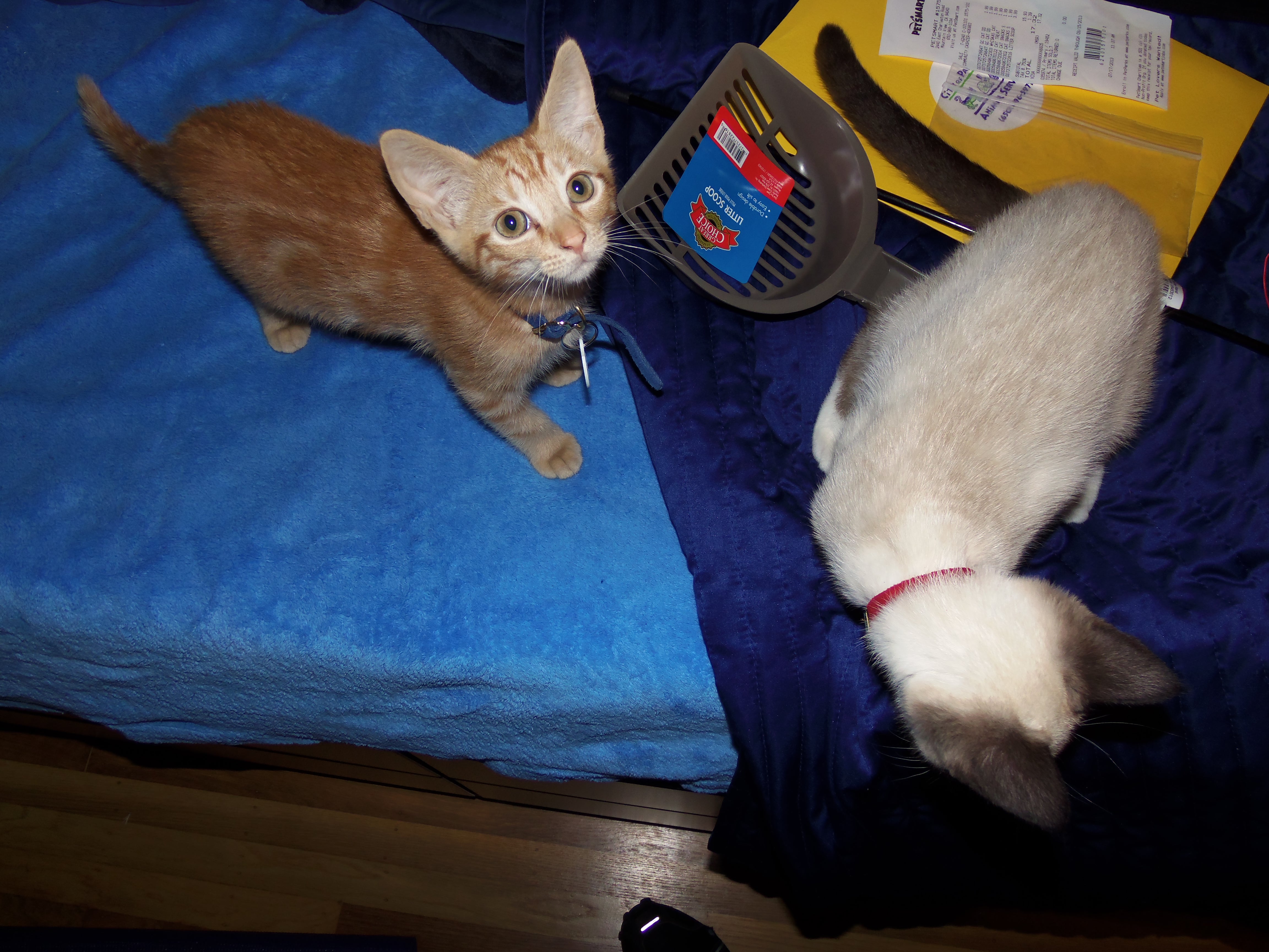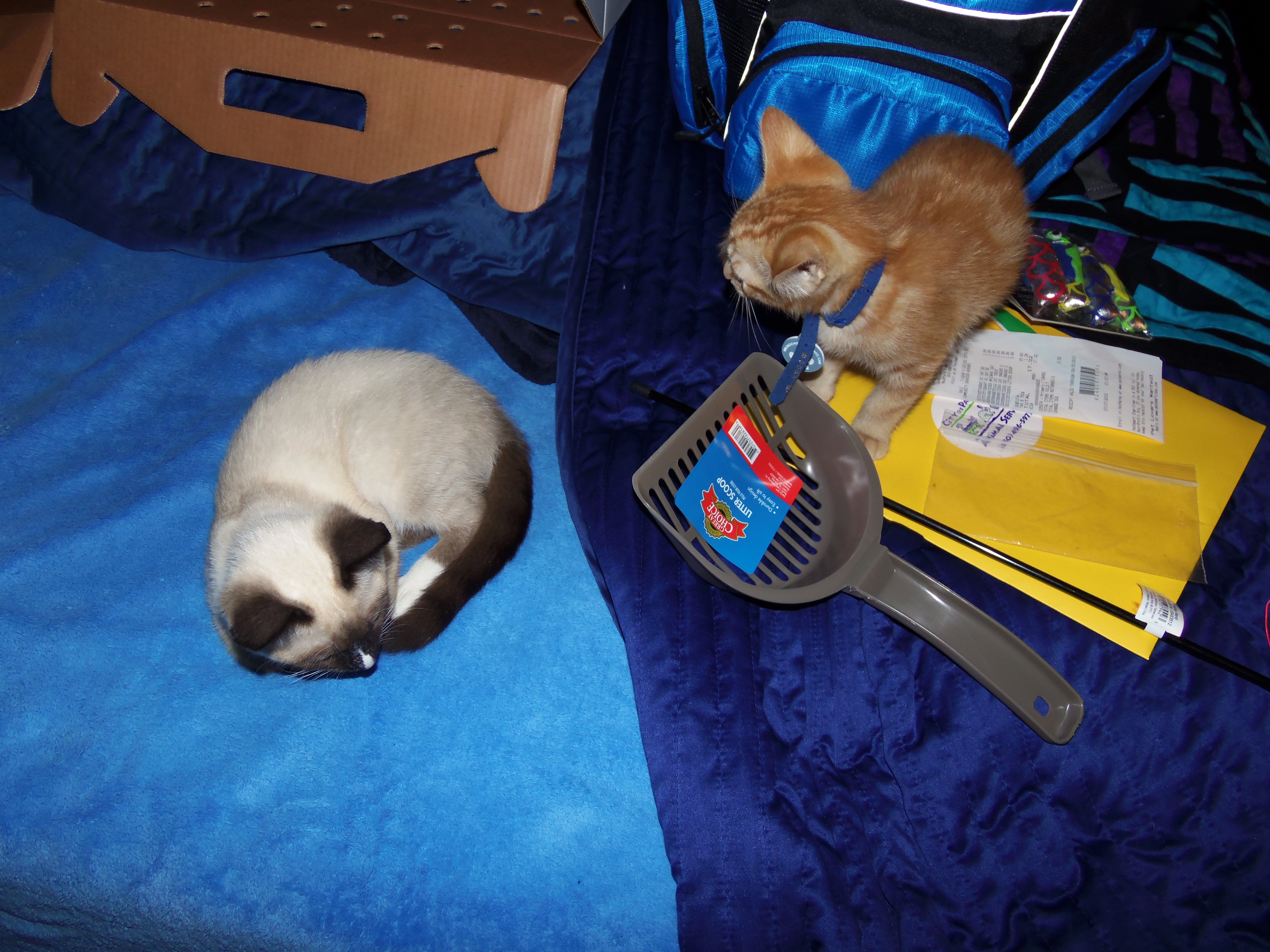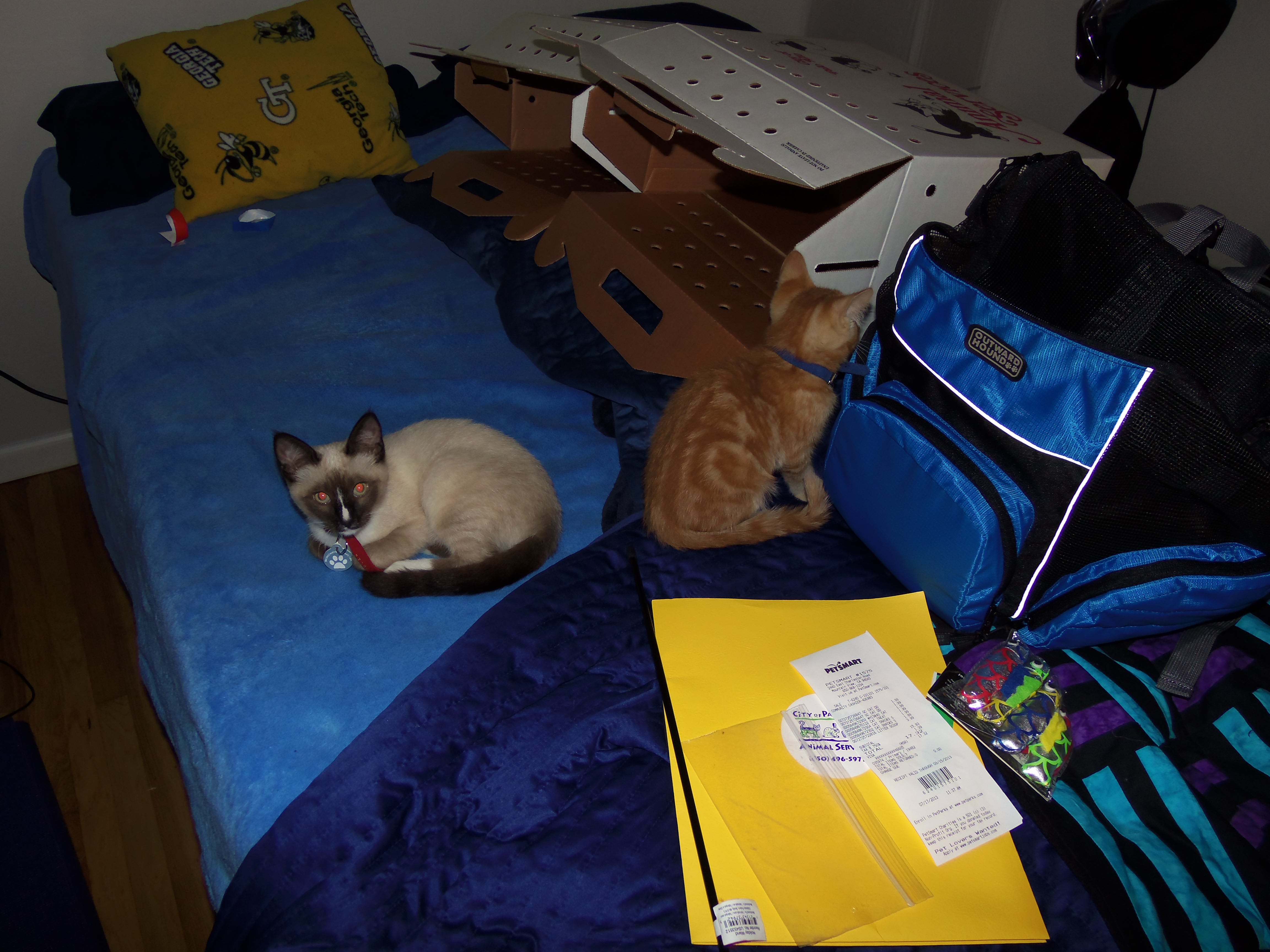 I went to the Palo Alto Animal Services to get 2 adorable kittens. One is an orange tabby and the other is a Siamese mix. They are soooo adorable. The orange tabby is a boy I’ve named “Archer” and the Siamese is a girl I’ve named “Lana.” I spend the day cuddling with them and getting them used to me and my room. We tried to introduce Howard, but Lana did not get along with him. I’ll ease them into Howard over the next few days. They are soooooo cute.