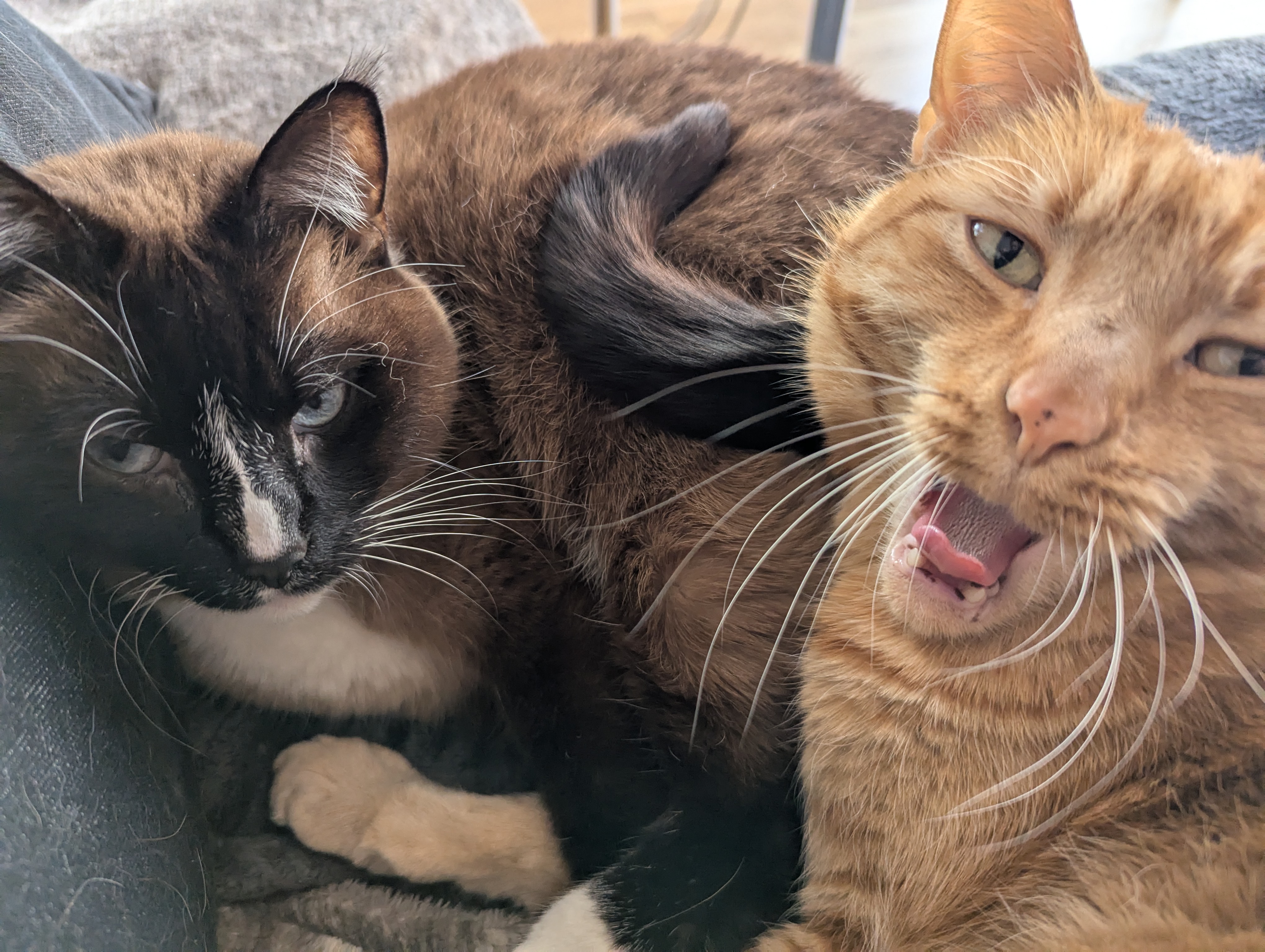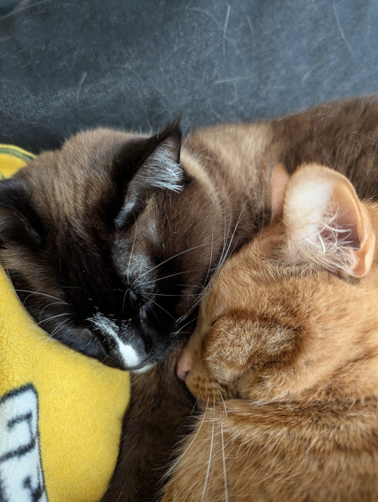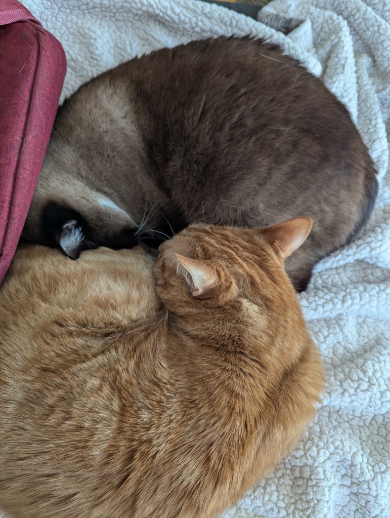 The flight back Sunday was thankfully uneventful, and we got to cuddle kitties all evening.