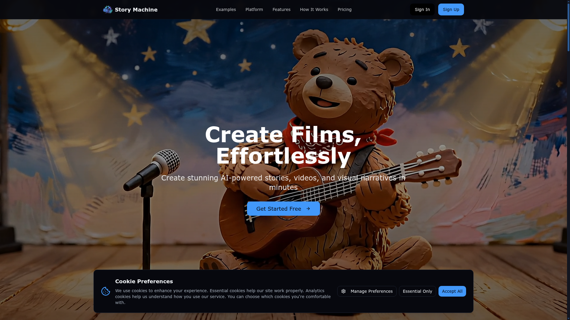 Story Machine AI is a full-stack AI filmmaking platform I conceived, architected, and built as a solo founder. The goal was to take a user from a simple idea to a fully assembled short film — including characters, scenes, video clips, voice, and lipsync — without the need for a traditional studio. The core hypothesis: the generative ecosystem (reference-based image models, affordable video generation, audio synthesis, lipsync, LLMs) had matured enough to support a structured filmmaking pipeline rather than isolated single-shot generation. I built the system to production in ~1 month to MVP, hired two developers and a marketer, and shipped a live product. Ultimately, while the system worked well technically, the market timing and my lack of a strong marketing co-founder limited growth. This project represents my strengths as: AI systems architect